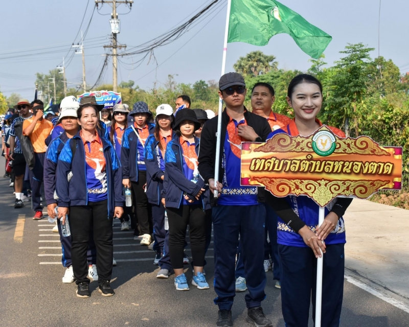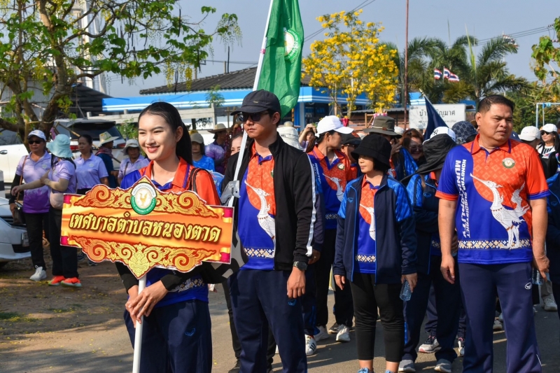 นางสาวพิมานมาศ ทองทรวง นายกเทศมนตรีตำบลหนองตาด พร้อมด้วย คณะผู้บริหาร สมาชิกสภาเทศบาล ปลัดเทศบาล หัวหน้าส่วนราชการ และพนักงานเทศบาลตำบลหนองตาด เข้าร่วมพิธีเปิดกีฬาสันนิบาตเทศบาลจังหวัดบุรีรัมย์ “ลำปลายมาศเกมส์” ครั้งที่ 20 ประจำปี 2569 ณ สนามกีฬาโรงเรียนลำปลายมาศ