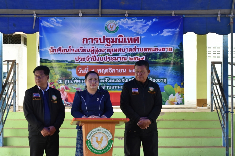 วันที่ 4 พฤศจิกายน 2568 เวลา 10.00 น. นางสาวพิมานมาศ ทองทรวง นายกเทศมนตรีตำบลหนองตาด พร้อมคณะผู้บริหาร สมาชิกสภาเทศบาลตำบลหนองตาด กำนัน/ผู้ใหญ่บ้าน และคณะผู้อำนวยการผู้สูงอายุ ร่วมพิธีเปิดการปฐมนิเทศนักเรียนโรงเรียนผู้สูงอายุเทศบาลตำบลหนองตาด พบปะกับนักเรียนโรงเรียนผู้สูงอายุ ณ โรงเรียนผู้สูงอายุ เทศบาลตำบลหนองตาด