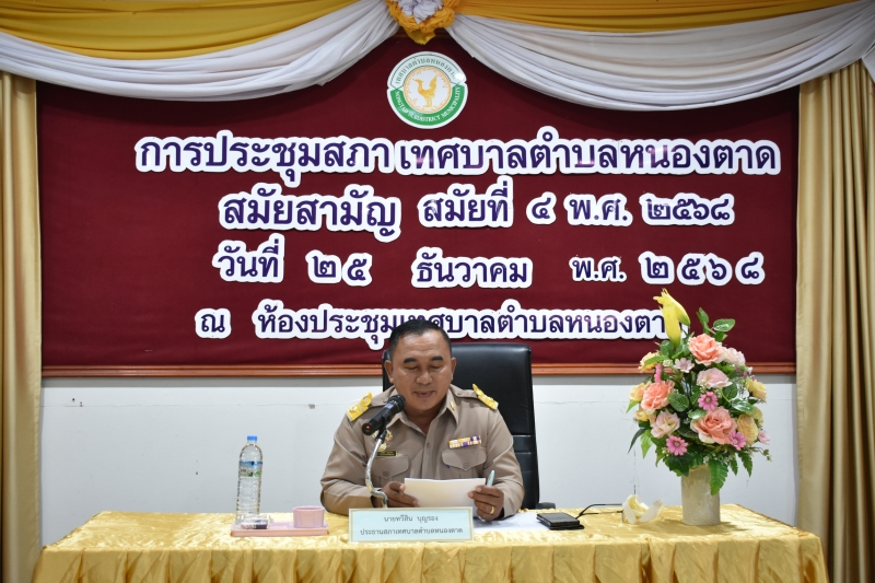 การประชุมสภาเทศบาลตำบลหนองตาด สมัยสามัญ สมัยที่ 4 พ.ศ. 2568 วันที่ 25 ธันวาคม พ.ศ. 2568 ณ ห้องประชุมสภาเทศบาลตำบลหนองตาด
