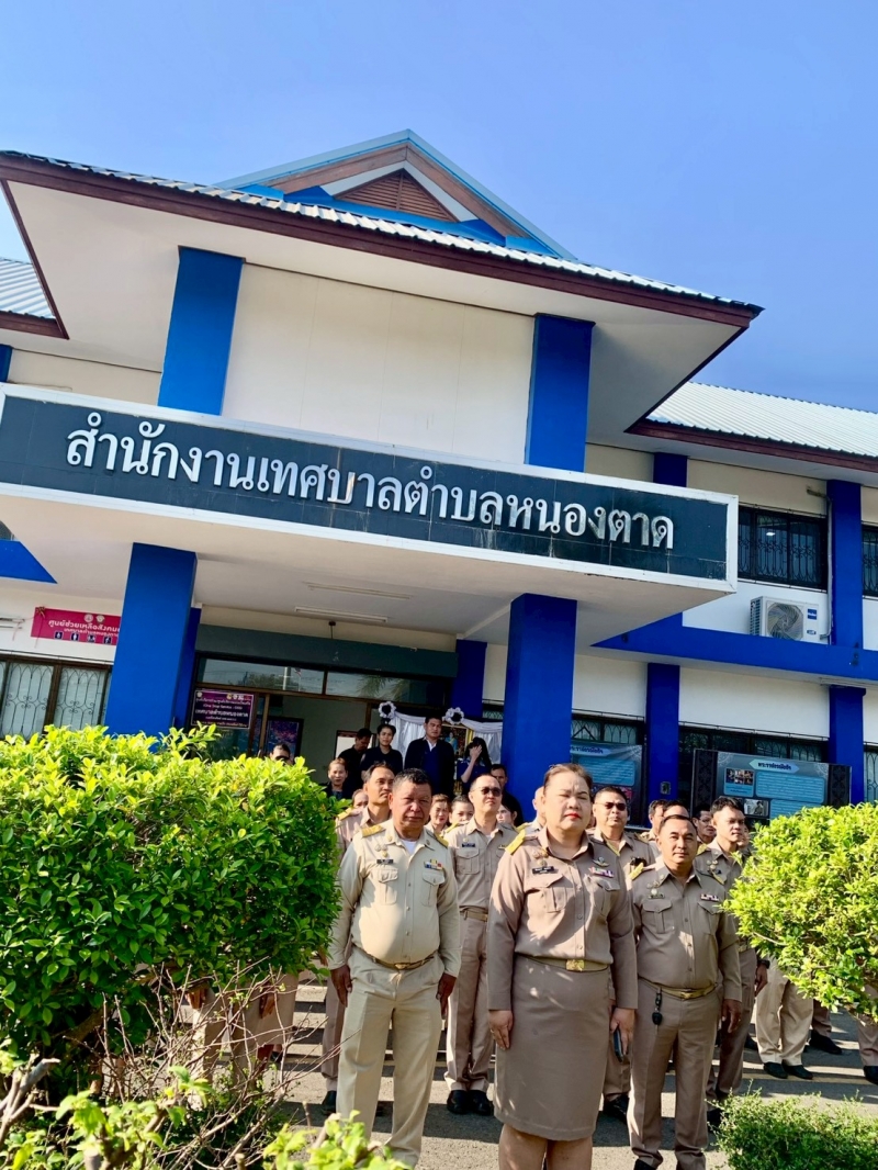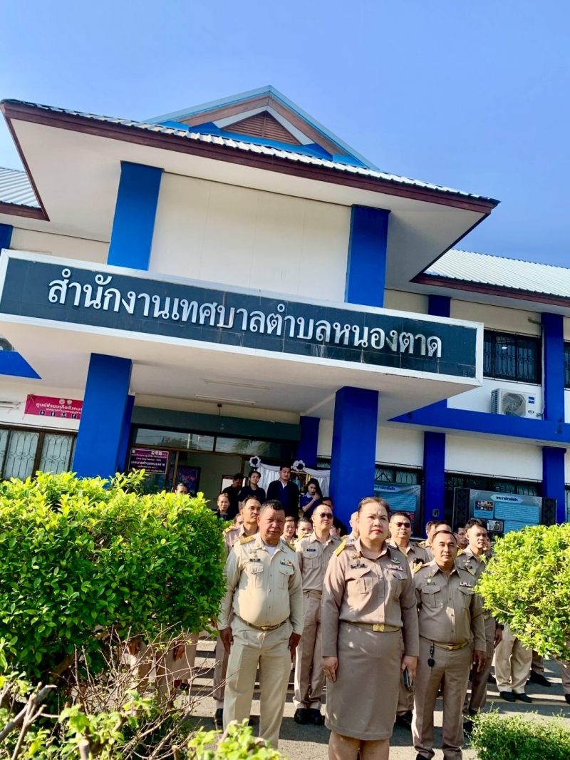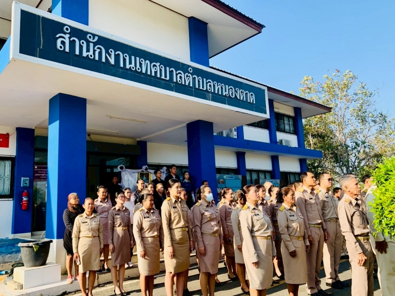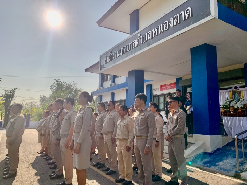 วันจันทร์ที่ 2 กุมภาพันธ์ 2569 เวลา 08.30 น. นางสาวพิมานมาศ ทองทรวง นายกเทศมนตรีตำบลหนองตาด พร้อมด้วยคณะผู้บริหาร สมาชิกสภาเทศบาลตำบลหนองตาด หัวหน้าส่วนราชการ และเจ้าหน้าที่เทศบาลตำบลหนองตาด เข้าร่วมกิจกรรมเคารพธงชาติ และสวดมนต์ ณ สำนักงานเทศบาลตำบลหนองตาด