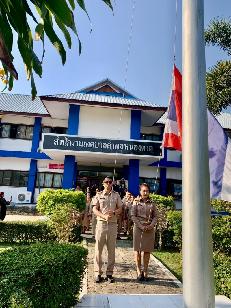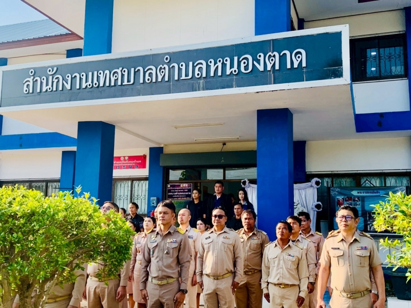 วันจันทร์ที่ 2 กุมภาพันธ์ 2569 เวลา 08.30 น. นางสาวพิมานมาศ ทองทรวง นายกเทศมนตรีตำบลหนองตาด พร้อมด้วยคณะผู้บริหาร สมาชิกสภาเทศบาลตำบลหนองตาด หัวหน้าส่วนราชการ และเจ้าหน้าที่เทศบาลตำบลหนองตาด เข้าร่วมกิจกรรมเคารพธงชาติ และสวดมนต์ ณ สำนักงานเทศบาลตำบลหนองตาด
